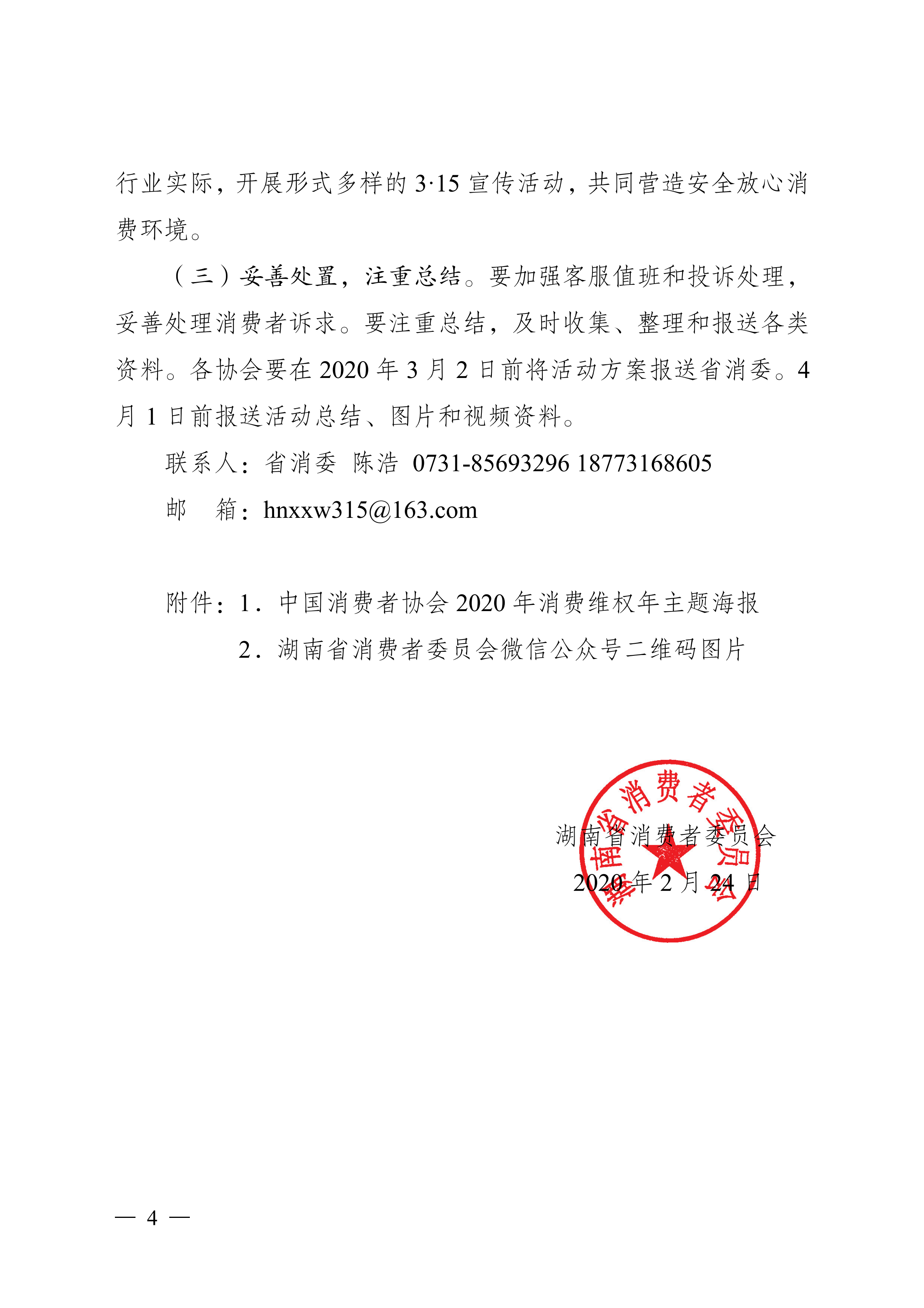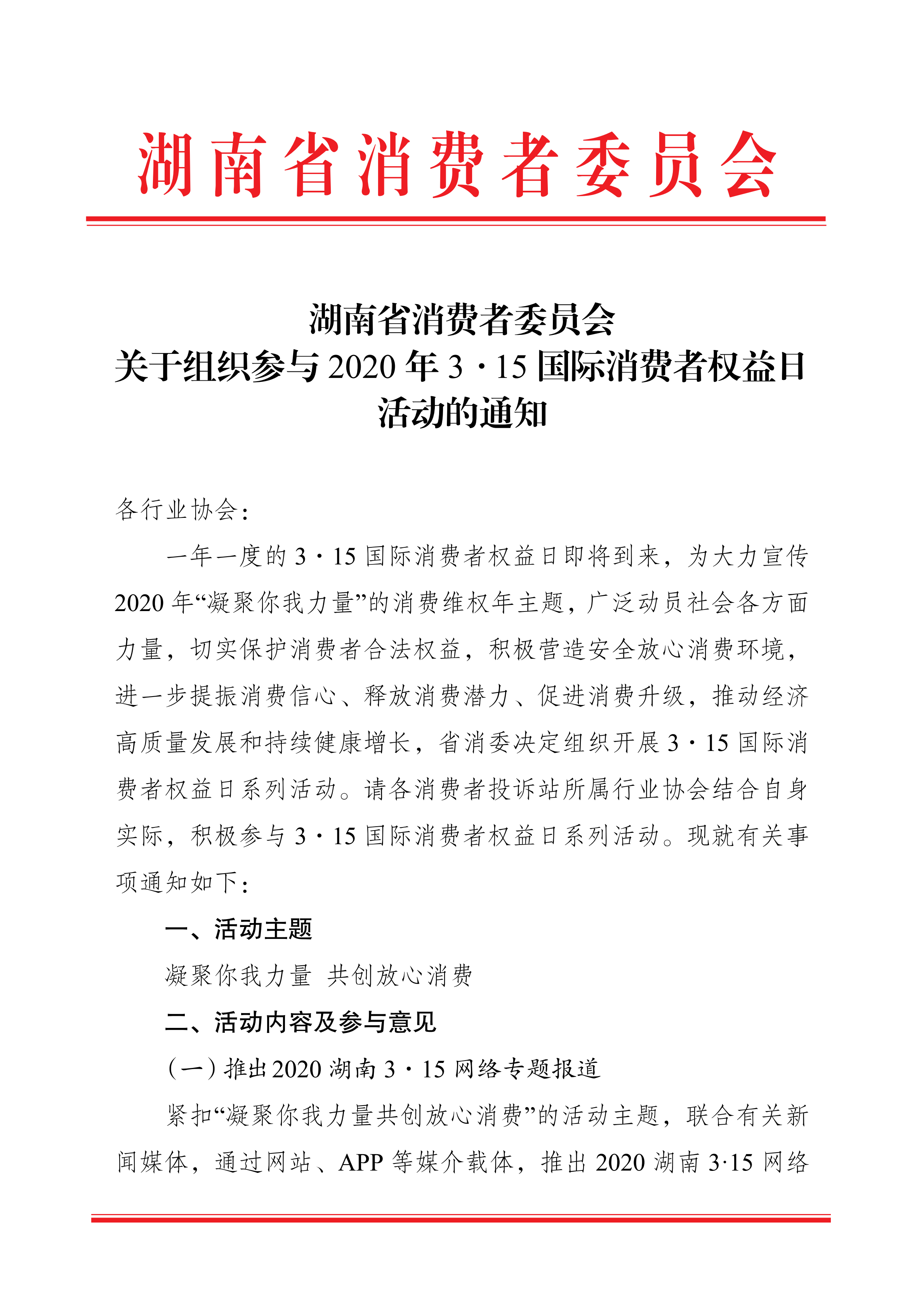 湖南省消費者委員會關于組織參與 2020 年 3·15 國際消費者權益日