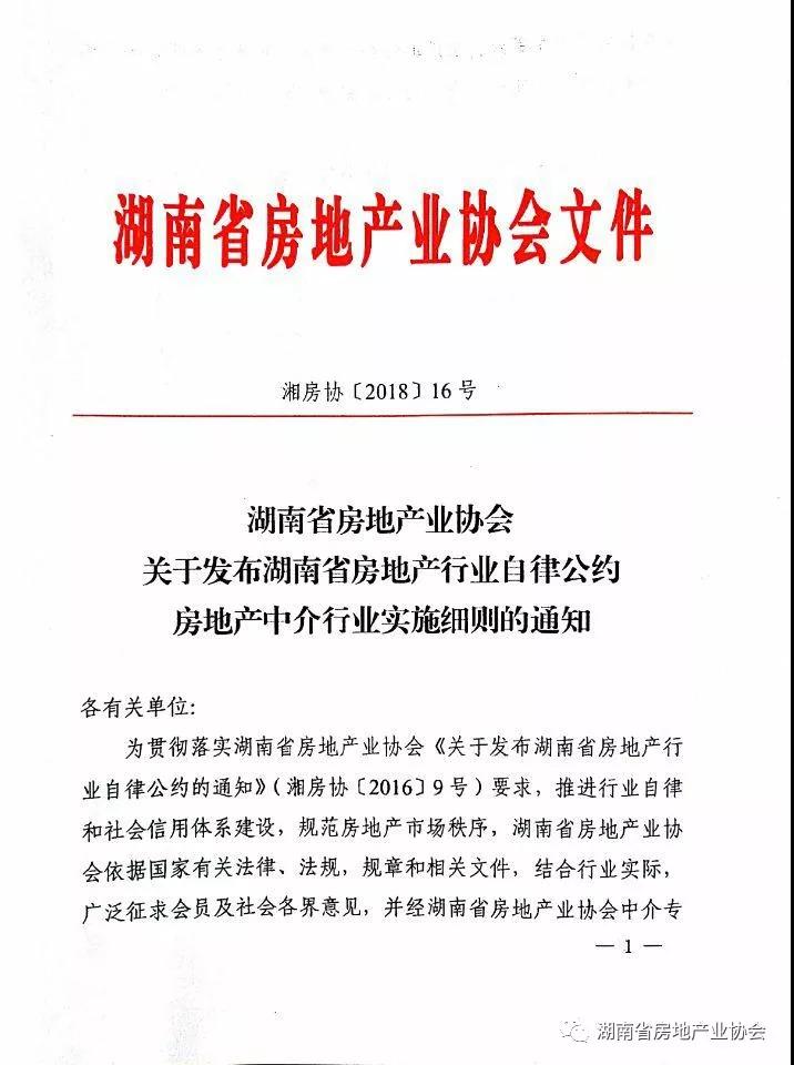 關于發布湖南省房地產行業自律公約房地產中介行業實施細則的通知