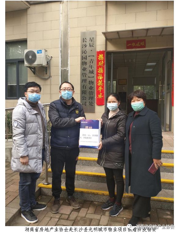 困難面前,不分你我。省房協積極履行社會責任,對街道社區、工作困難的非會員企業積極進行援助。天心區省水運投資建設集團住宅小區、長沙縣早安星城(蘋果社區)小區和光明城市等項目物業公司,并非協會會員,但我會在了解到這些存在疫情的小區和社區,防疫物資卻很缺乏時,立即將從緊急籌備的物資中分派了口罩等物資。2月20日,當我會把防疫物資送到企業,蘋果社區相關負責人由衷地說:“我們不是貴會會員,卻也能享受到關懷,真的非常感謝!”