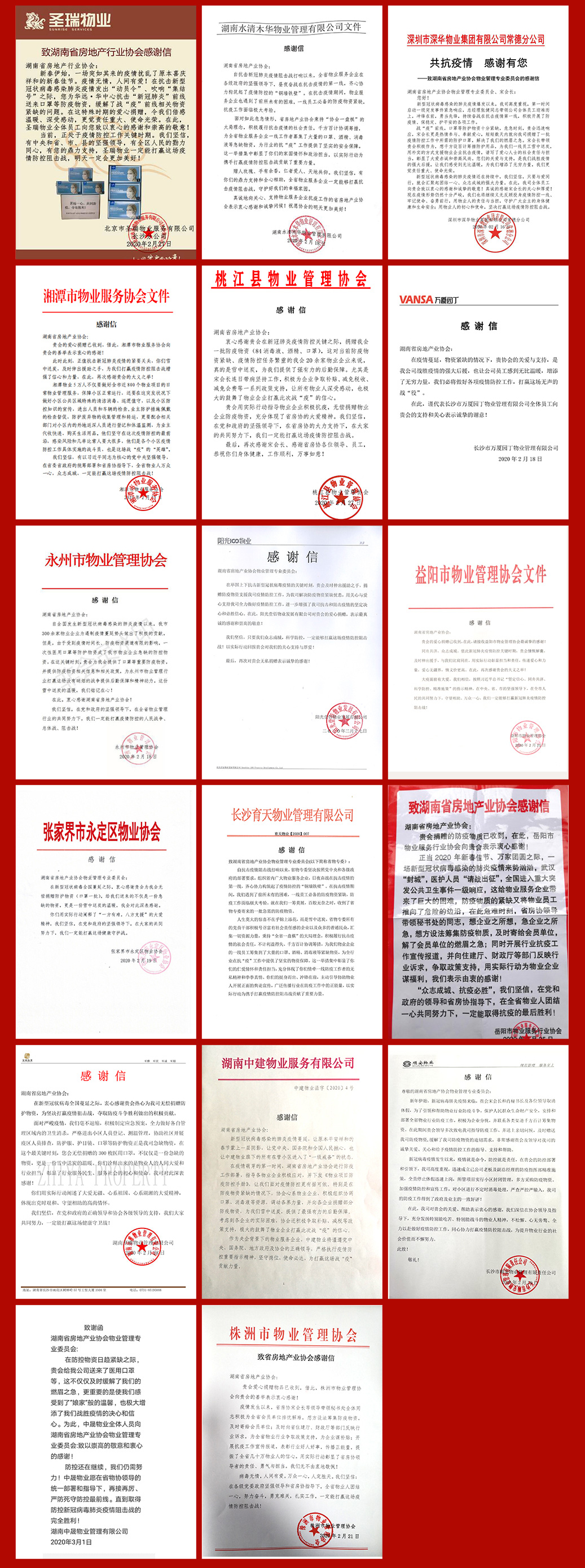 自疫情發(fā)生以來,湖南省房協(xié)向全社會發(fā)出倡議,積極募集防疫物資,向會員單位進(jìn)行捐贈,同時組織對各市州物業(yè)管理協(xié)會、各物業(yè)企業(yè)會員單位和非會員單位進(jìn)行定向捐贈。當(dāng)協(xié)會致力于使我省房地產(chǎn)行業(yè)防疫工作得到更多關(guān)注和支持時,協(xié)會收到來自市州協(xié)會和會員單位的感謝信。