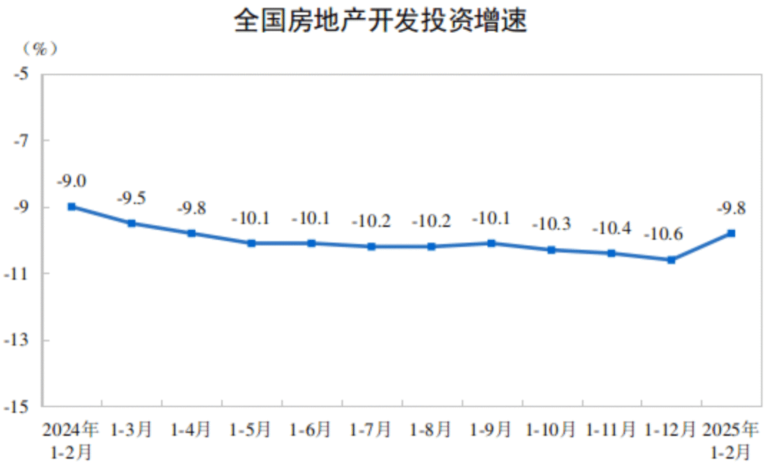 數據顯示,1-2月份全國房地產開發投資10720億元,同比下降9.8%,降幅比上年全年收窄0.8個百分點;其中住宅投資8056億元,下降9.2%,降幅收窄1.3個百分點。