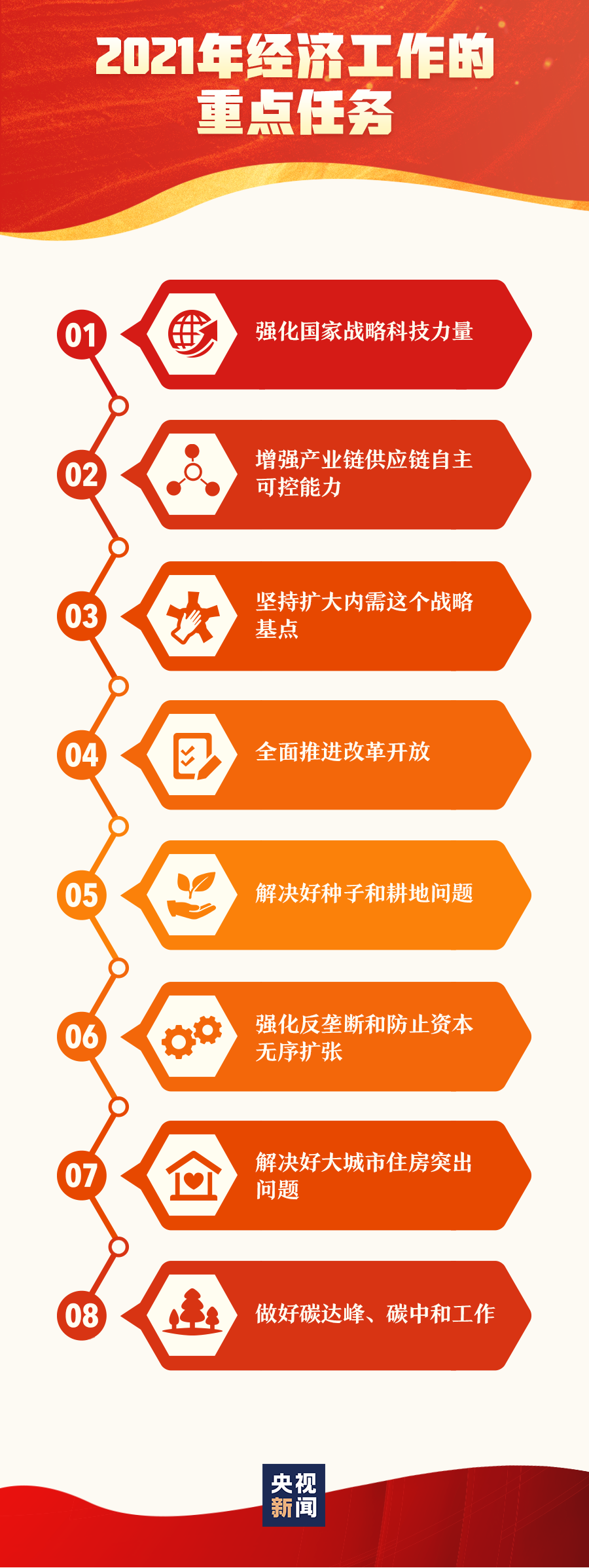 12月16日至18日,中央經(jīng)濟工作會議在北京舉行。習近平在會上發(fā)表重要講話,總結(jié)2020年經(jīng)濟工作,分析當前經(jīng)濟形勢,部署2021年經(jīng)濟工作。 面對復雜的國內(nèi)外形勢以及新冠肺炎疫情的嚴重沖擊,2021年經(jīng)濟工作的重點任務有哪些?具體該如何做?一起劃重點↓↓↓