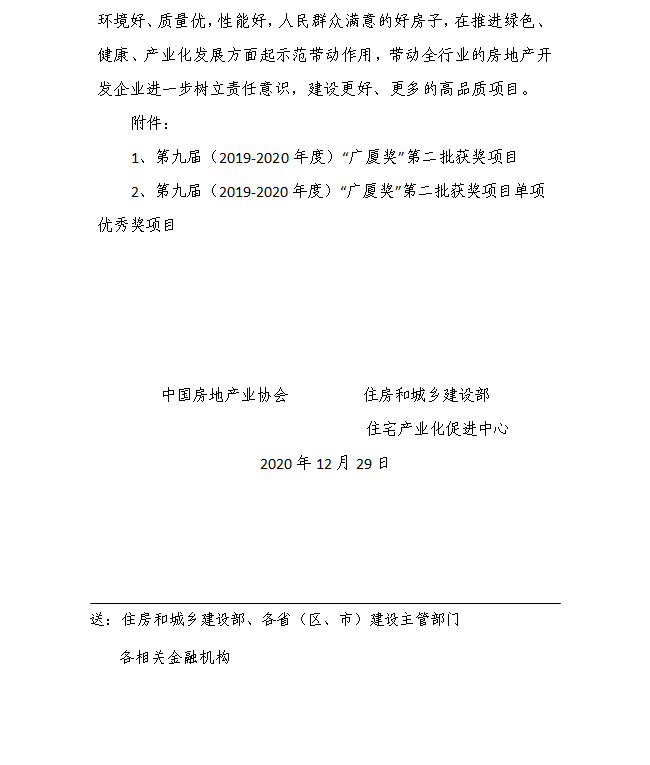 (附:關于表彰第九屆(2019—2020年度)“廣廈獎”第二批獲獎項目的通報)