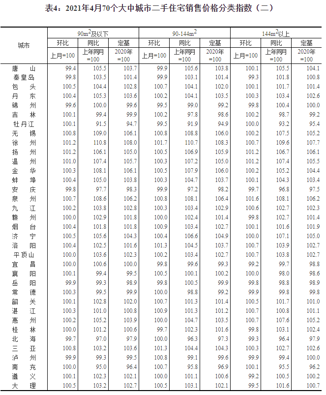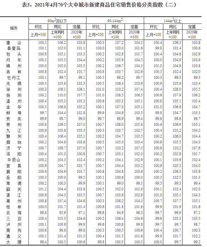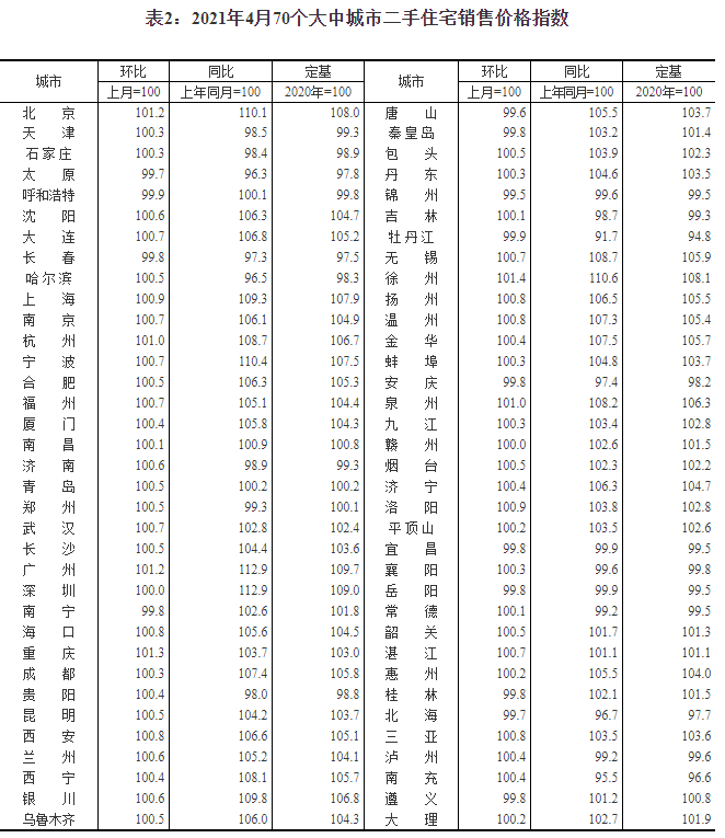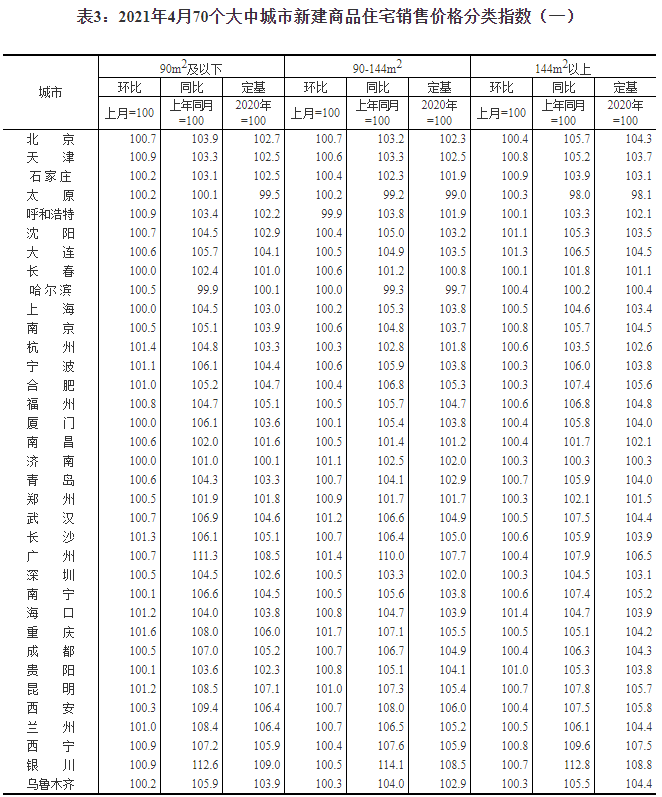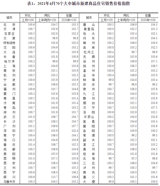 2021年4月份70個(gè)大中城市商品住宅銷售價(jià)格變動(dòng)情況