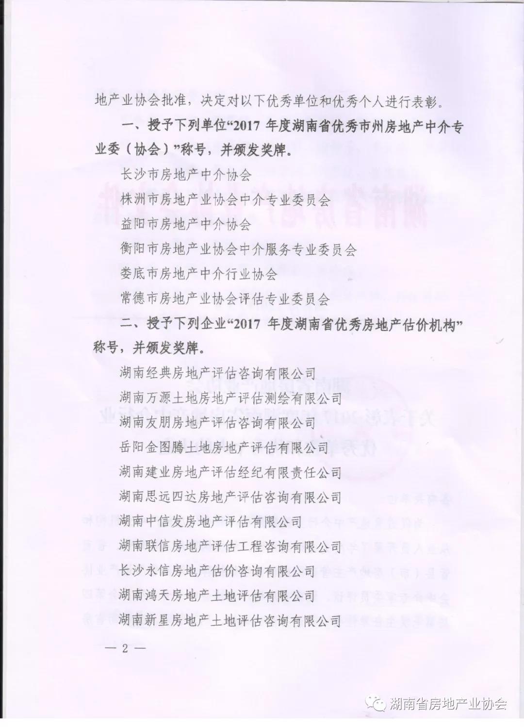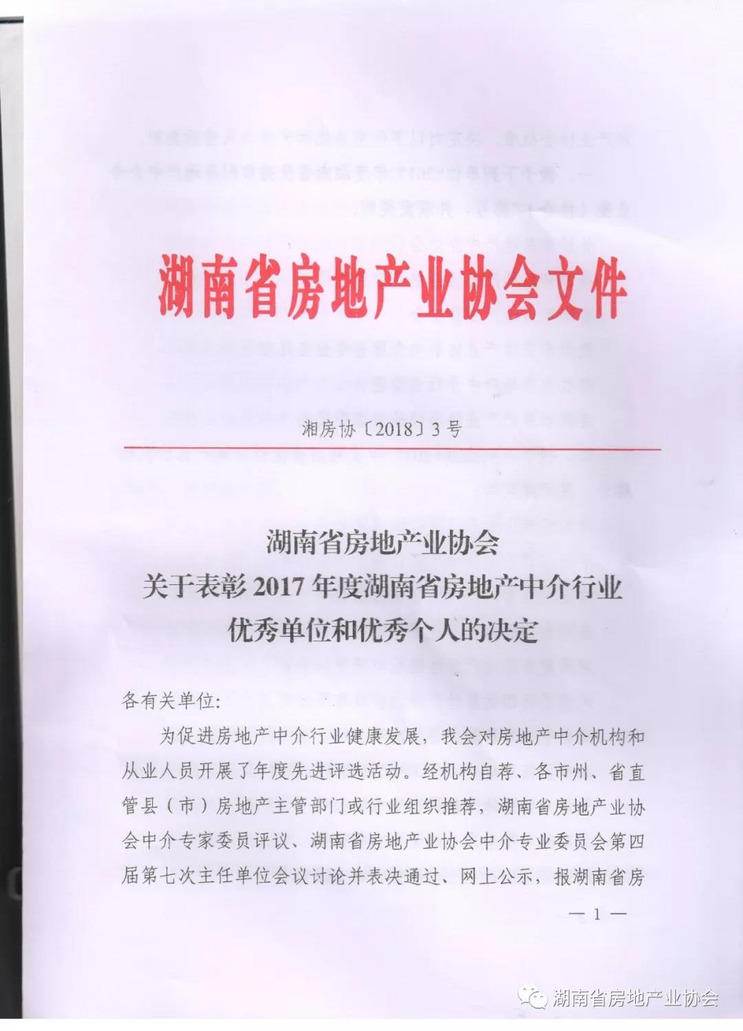 表彰2017年度湖南省房地產(chǎn)中介行業(yè)優(yōu)秀單位和優(yōu)秀個(gè)人