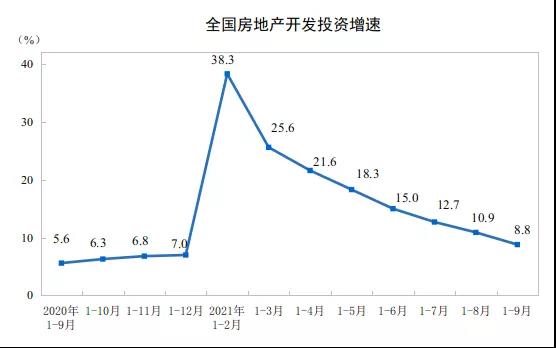 2021年1—9月份全國房地產(chǎn)開發(fā)投資增長8.8%