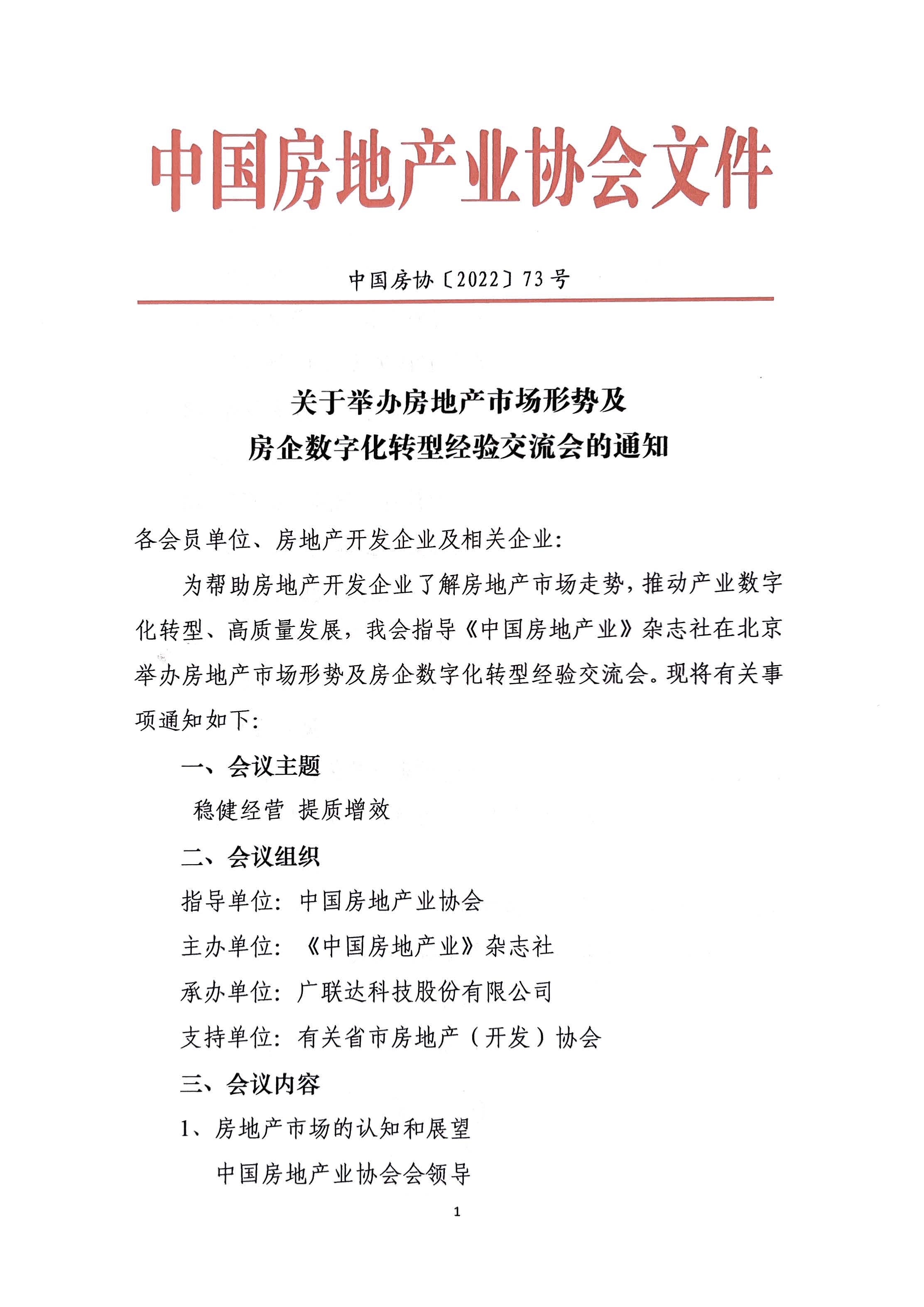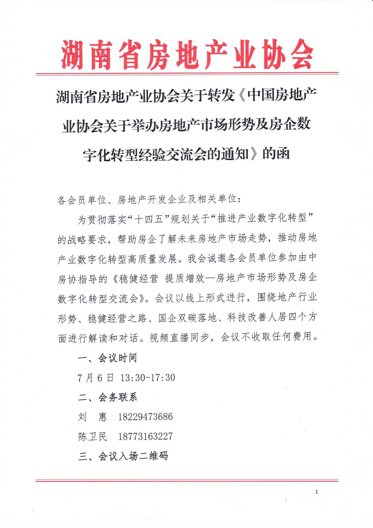 關于轉發《中國房地產業協會關于舉辦房地產市場形勢及房企數字化轉型經驗交流會的通知》的函