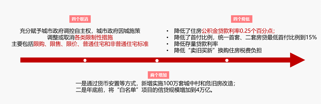 9月26日中央政治局會議首次明確“促進房地產市場止跌回穩”,對商品房建設要嚴控增量、優化存量、提高質量,加大“白名單”項目貸款投放力度,支持盤活存量閑置土地。