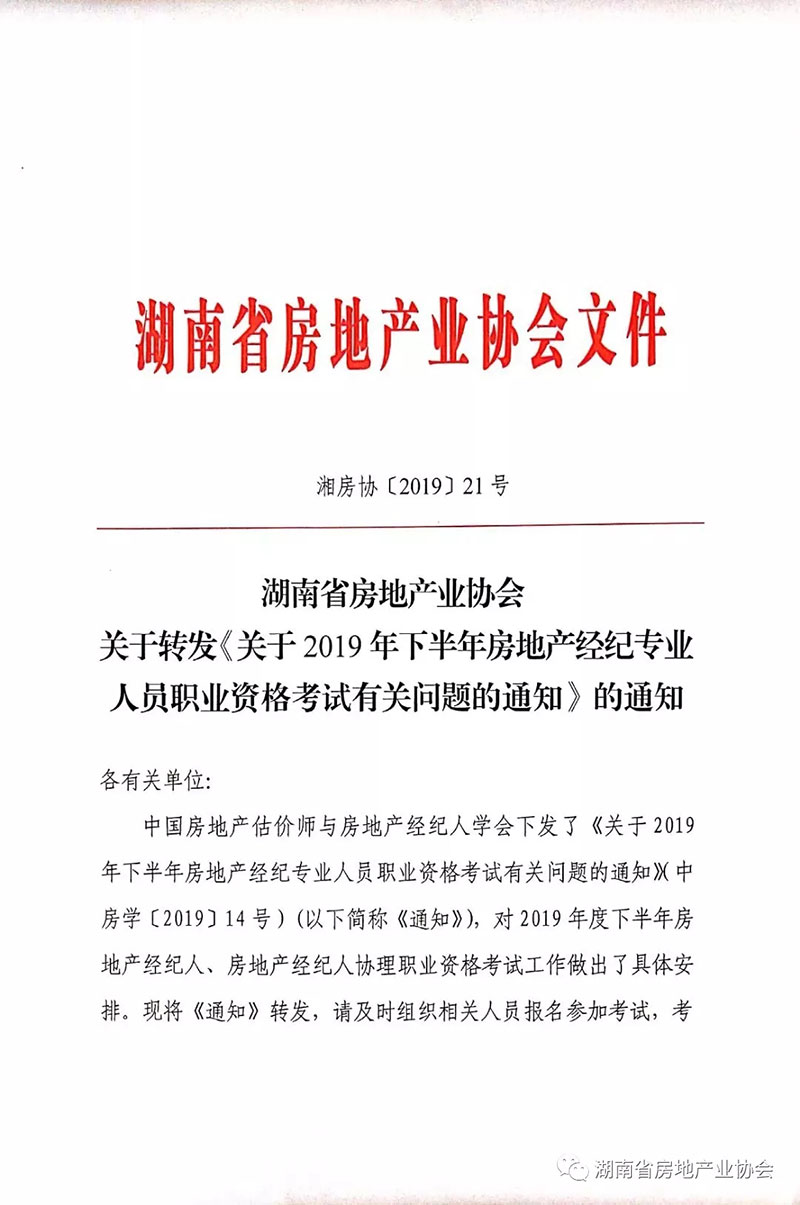 關(guān)于轉(zhuǎn)發(fā)《關(guān)于2019年下半年房地產(chǎn)經(jīng)紀(jì)專業(yè)人員職業(yè)資格考試有關(guān)問題的通知》的通知