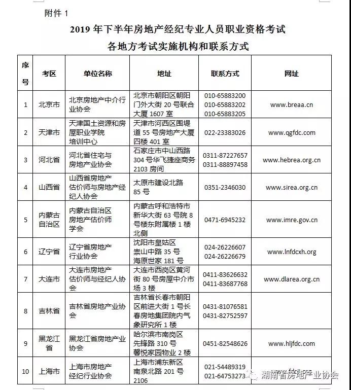 附件:1.2019年下半年房地產(chǎn)經(jīng)紀(jì)專業(yè)人員職業(yè)資格考試各地方考試實施機構(gòu)和聯(lián)系方式