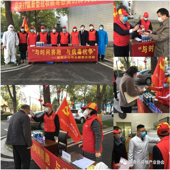 為積極踐行和落實(shí)黨中央對(duì)防疫工作的相關(guān)工作精神,充分發(fā)揮黨組織和黨員的先進(jìn)模范作用,2月13日,省房協(xié)會(huì)員單位張家界創(chuàng)遠(yuǎn)發(fā)展有限責(zé)任公司桂冠公司圍繞疫情防控開展“與時(shí)間賽跑,與病毒抗?fàn)帯敝黝}黨日活動(dòng)。黨員在全程參與本部大院各區(qū)域清洗殺菌消毒的同時(shí),為本部員工和本部大院住宅小區(qū)住戶義務(wù)測(cè)體溫、手機(jī)現(xiàn)場(chǎng)消毒,并免費(fèi)發(fā)放疫情防控物品180余份。真正讓黨旗飄起來、黨徽戴起來、黨員動(dòng)起來、黨組織強(qiáng)起來。