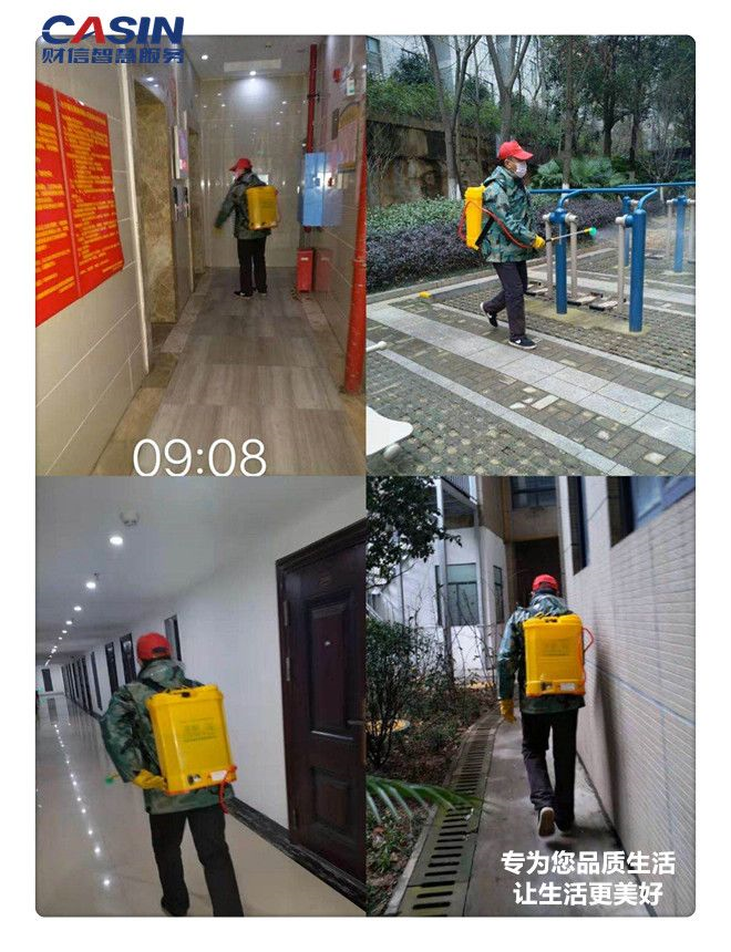 ___保潔人員,例會后,人員測溫再次上崗,并園區全方位第二次消殺。