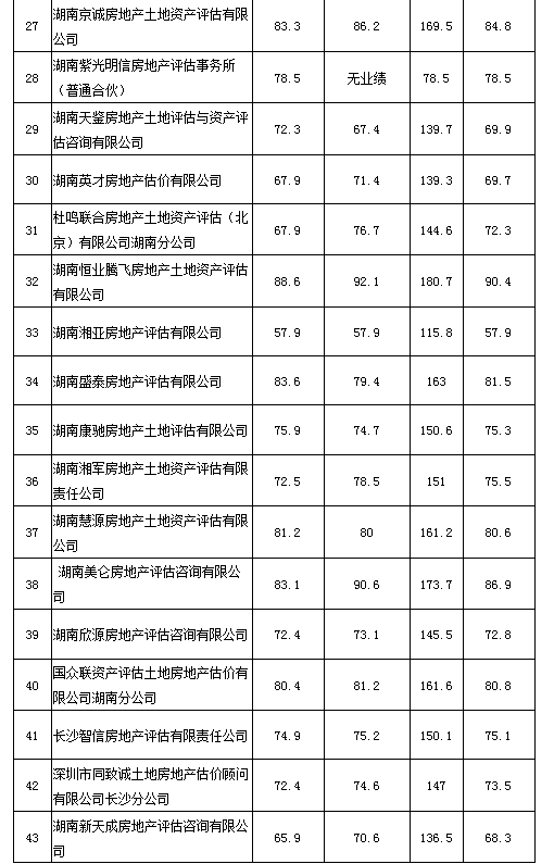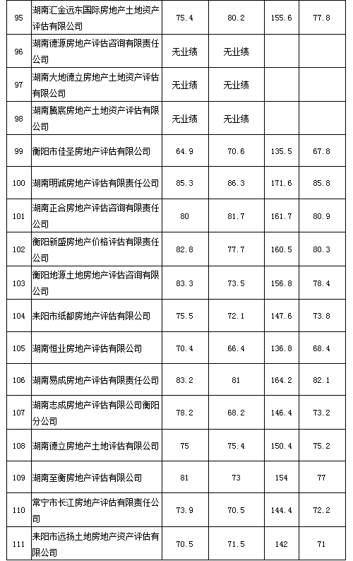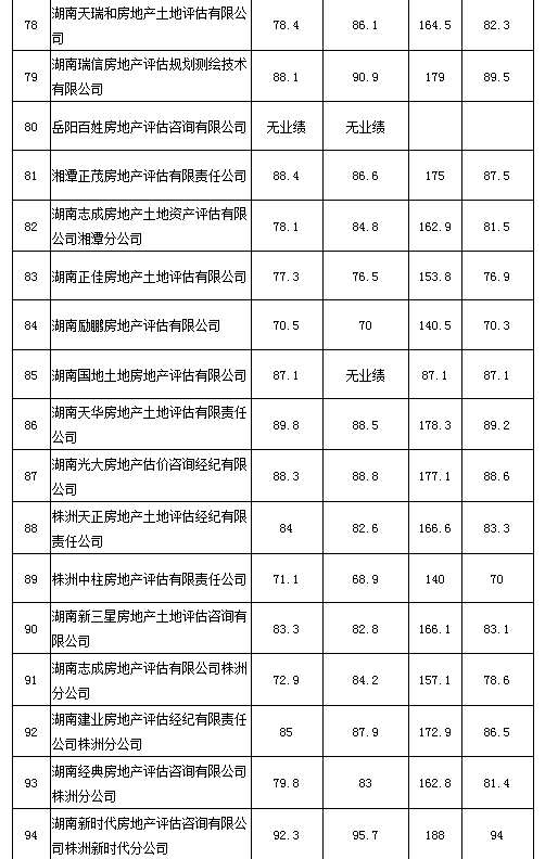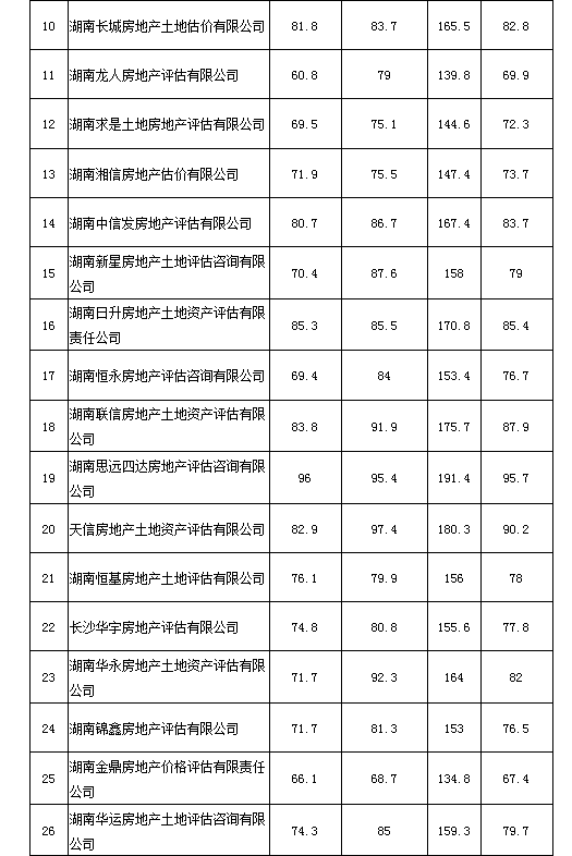 附件:2020年度湖南省房地產估價報告抽評得分情況匯總表