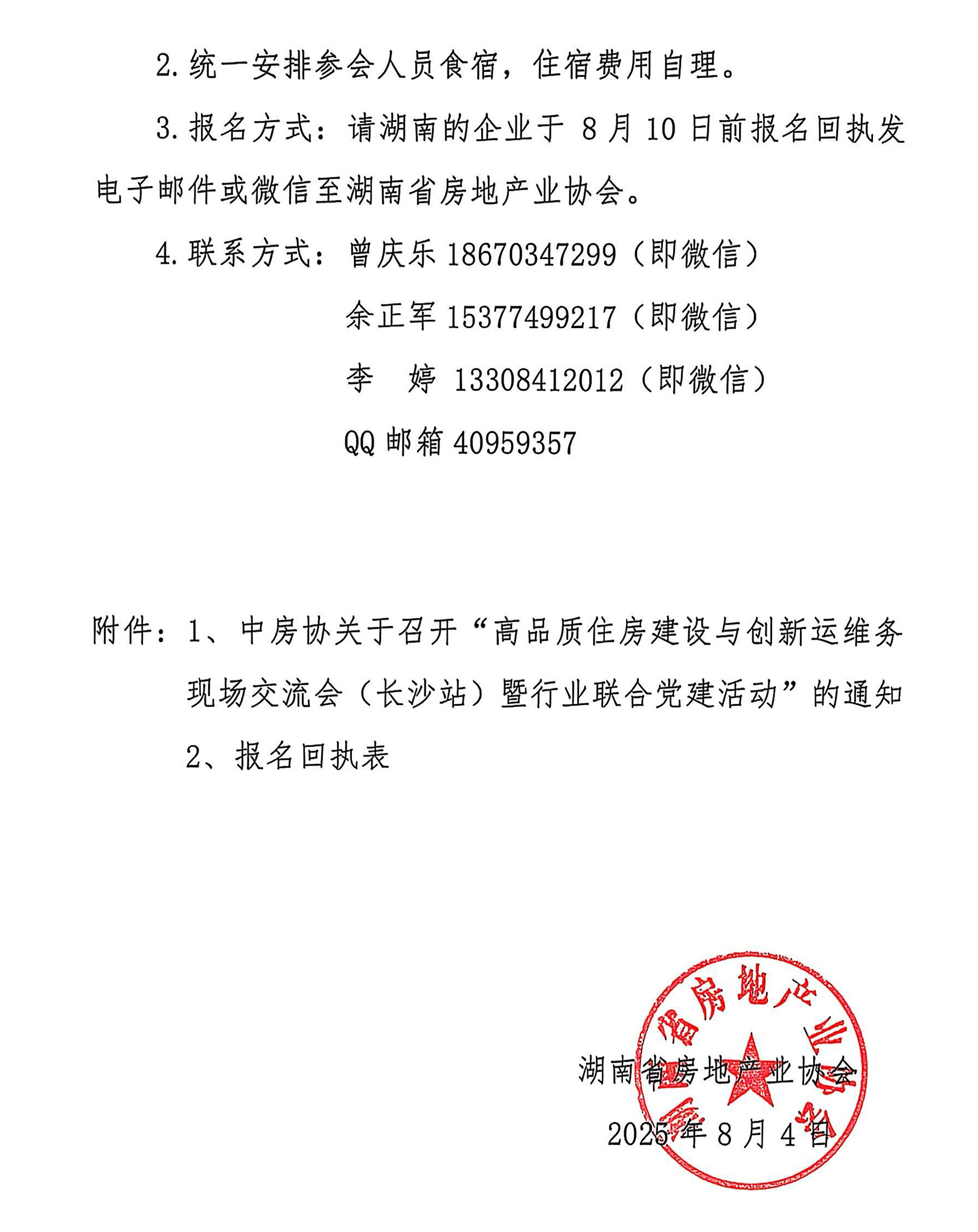 附件:1、中房協(xié)關(guān)于召開“高品質(zhì)住房建設(shè)與創(chuàng)新運維務(wù)現(xiàn)場交流會(長沙站)暨行業(yè)聯(lián)合黨建活動”的通知(點擊下載)