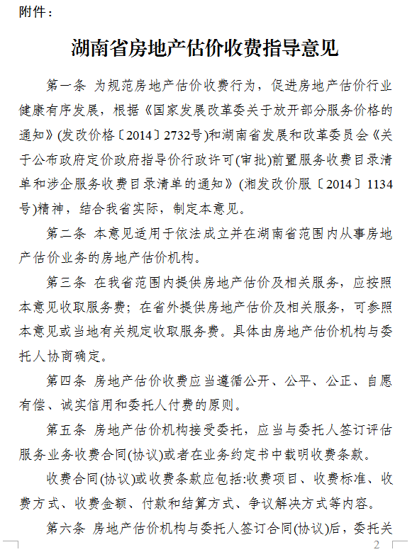 附件:湖南省房地產估價收費指導意見