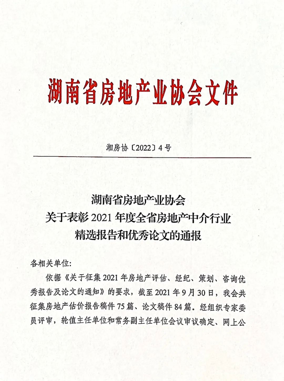 關于表彰2021年度全省房地產中介行業精選報告和優秀論文的通報