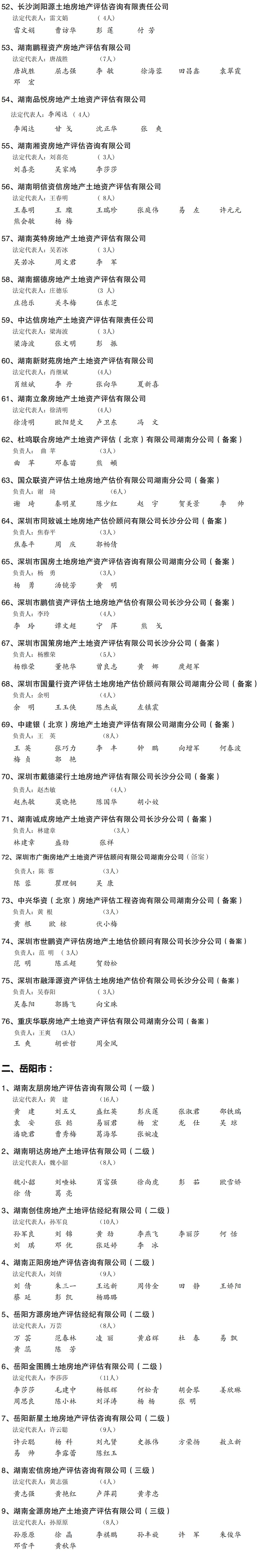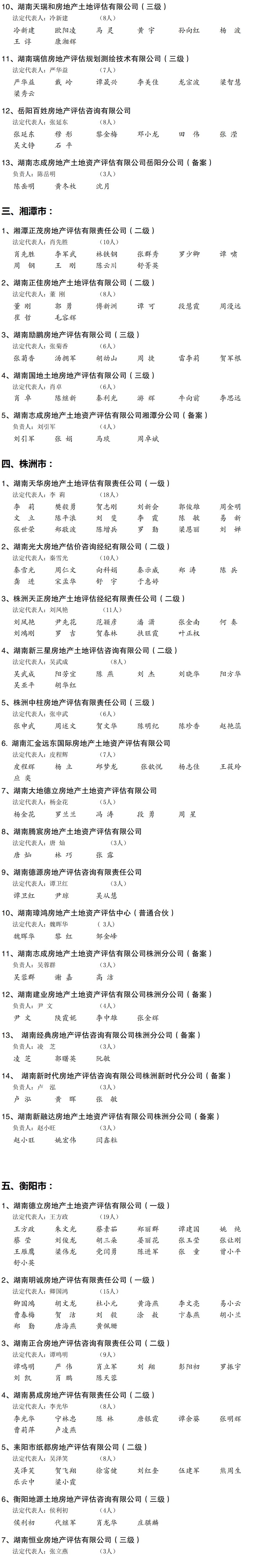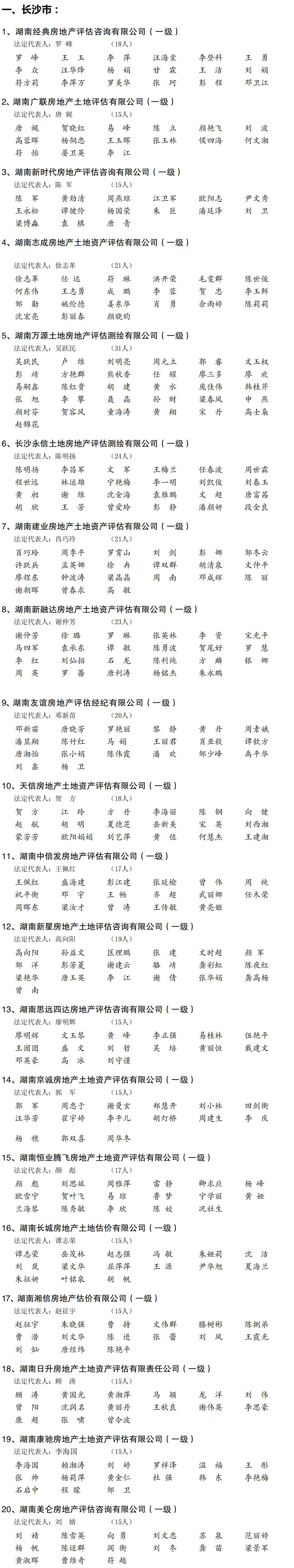 2021年度湖南省房地產估價企業及注冊房地產估價師名單公示