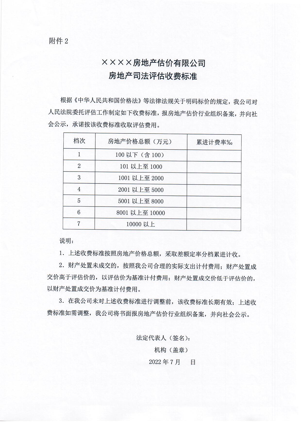 2.房地產(chǎn)司法評(píng)估收費(fèi)標(biāo)準(zhǔn)(附件2)。