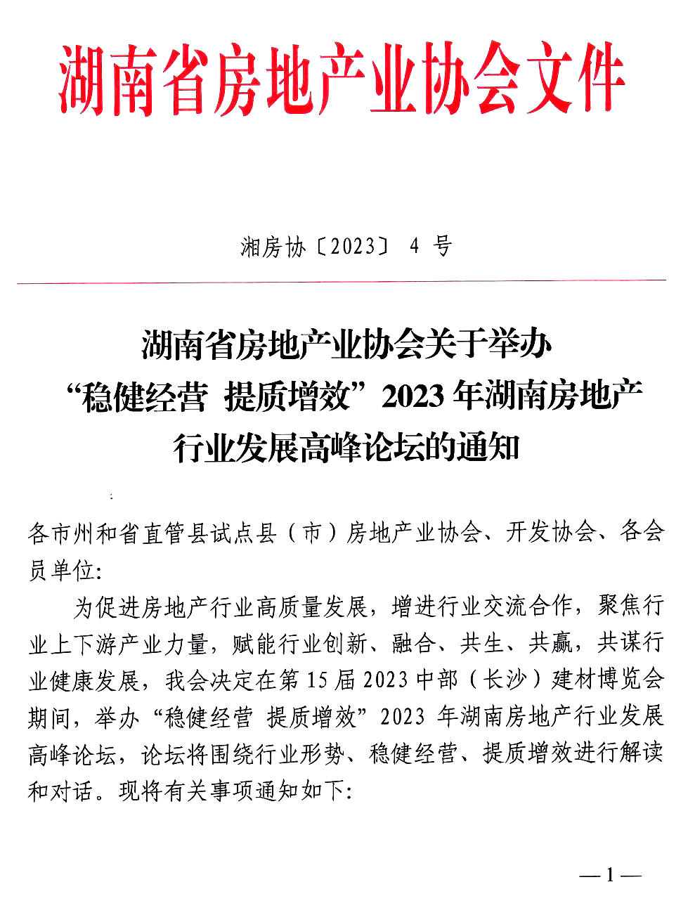 關(guān)于舉辦“穩(wěn)健經(jīng)營 提質(zhì)增效”2023年湖南房地產(chǎn)行業(yè)發(fā)展高峰論壇的通知