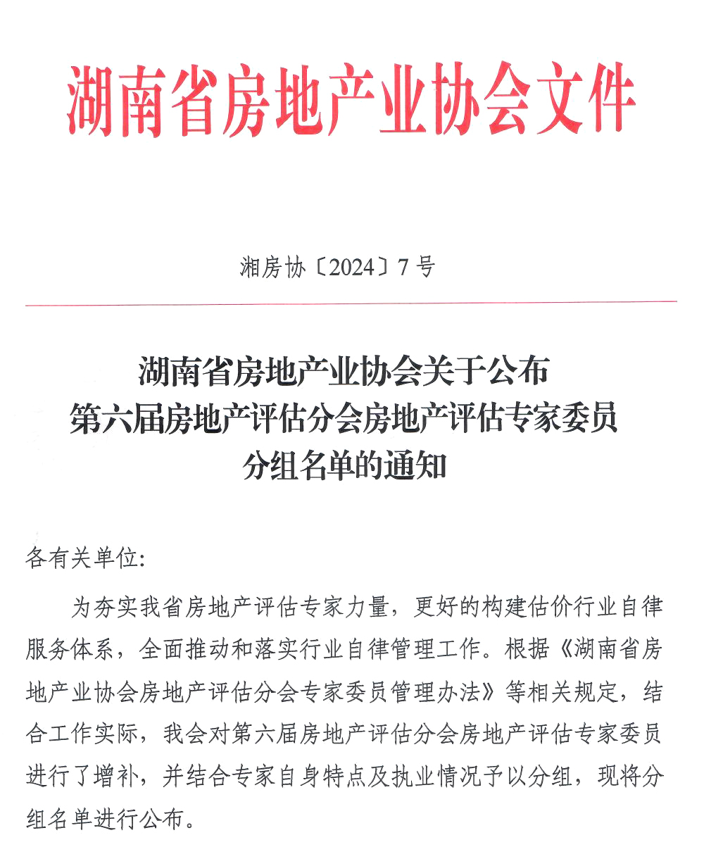 關于公布第六屆房地產評估分會房地產評估專家委員分組名單的通知