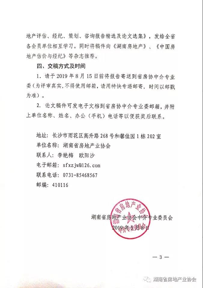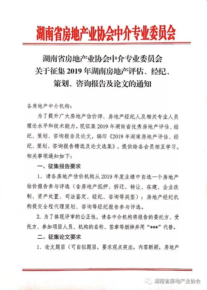 關于征集2019年湖南房地產評估、經紀、 策劃、咨詢報告及論文的通知