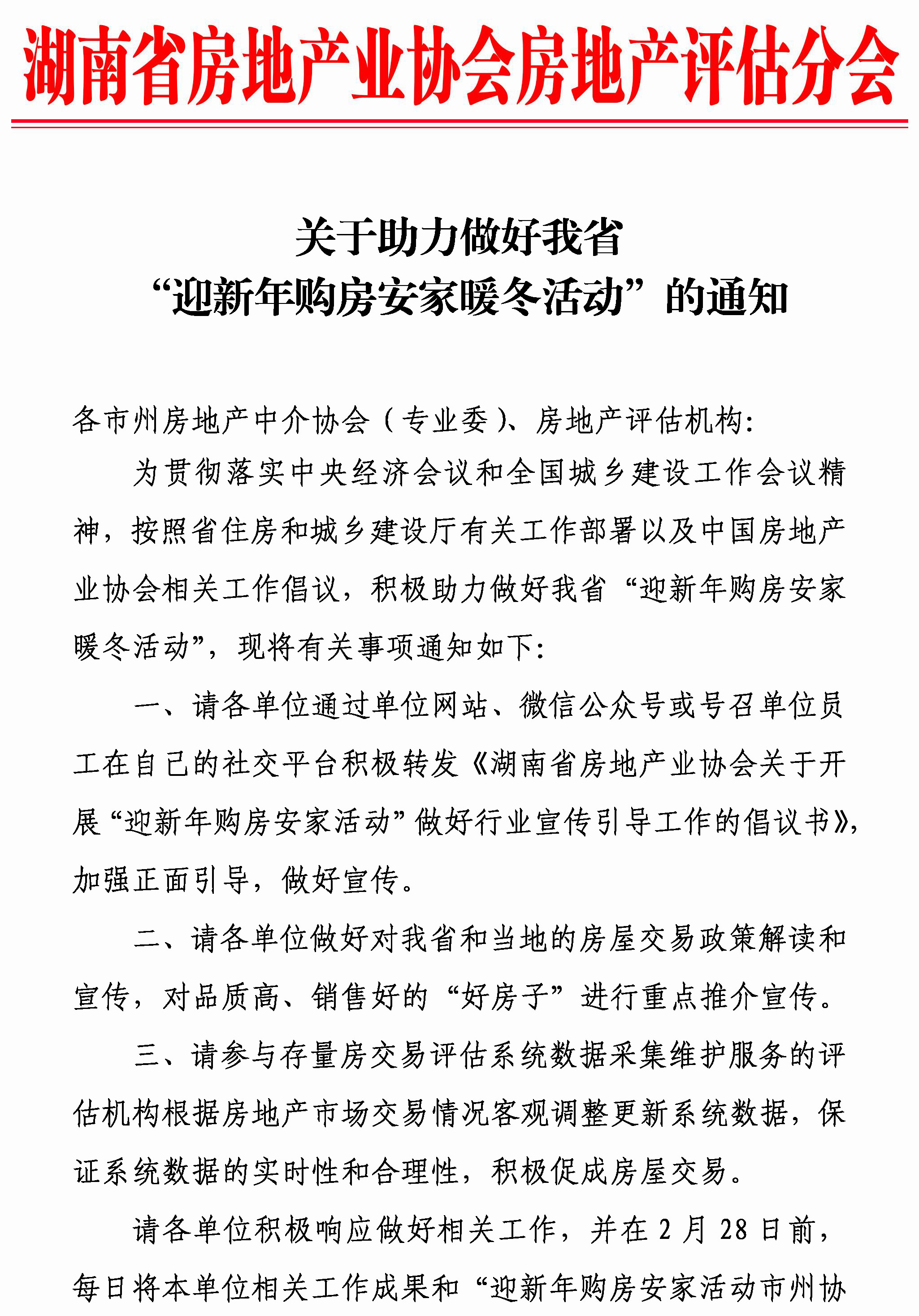 省房協(xié)倡導(dǎo)評估(中介)行業(yè)做好我省“迎新年購房安家暖冬活動”