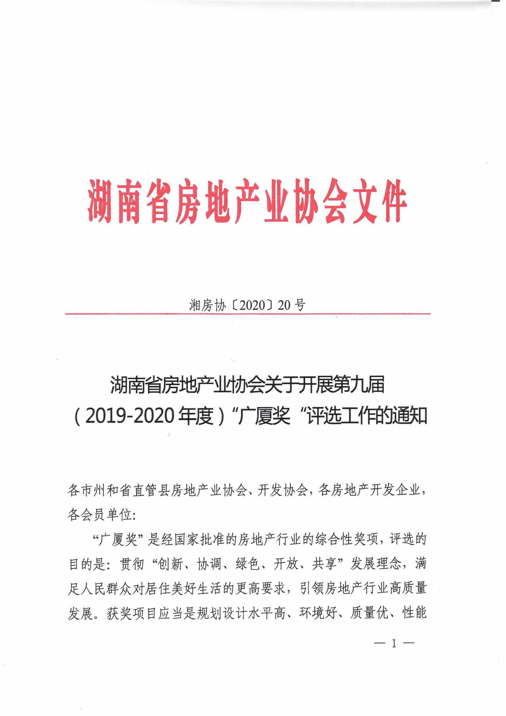 關于開展第九屆(2019-2020年度)“廣廈獎“評選工作的通知