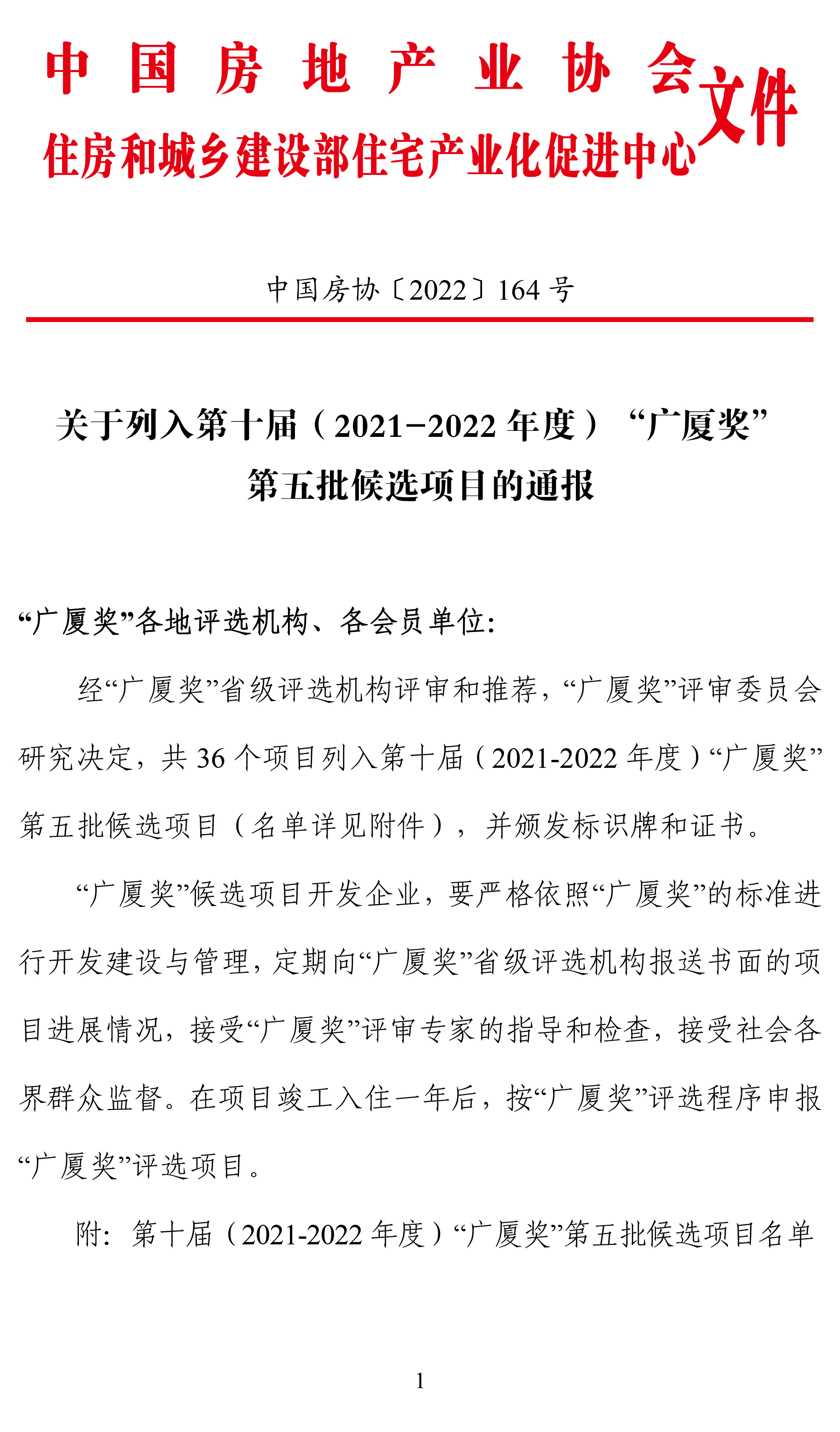 關于列入第十屆(2021-2022年度)“廣廈獎”第五批候選項目的通報