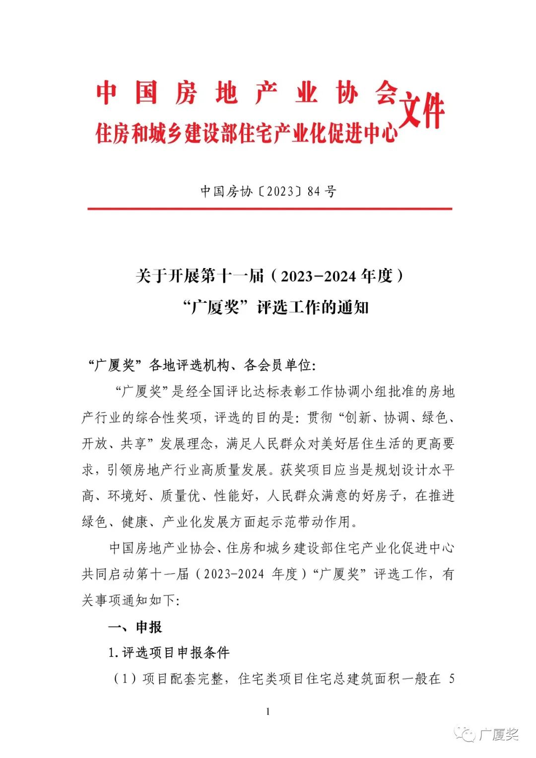 關于開展第十一屆(2023-2024年度)“廣廈獎”評選工作的通知