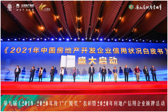 4月8日,在第九屆“廣廈獎”表彰暨2020年房地產信用企業頒牌活動中,中國房地產業協會首次發布《2020年中國房地產開發企業信用狀況白皮書》,并宣讀了《關于公布2020年房地產開發企業信用評價結果的決定》。