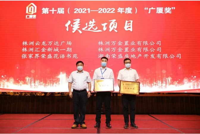 論壇現場,姚志宏為株洲萬金置業有限公司的“株洲云龍萬達廣場”“株洲匯金新城一期”項目、湖南榮盛房地產開發有限公司的“張家界榮盛花語書院”項目頒發了“廣廈獎候選項目”的牌匾。王惠敏和董少宇為在“廣廈獎”評選工作中做出貢獻的5位“廣廈獎”省級評審專家頒發聘書。